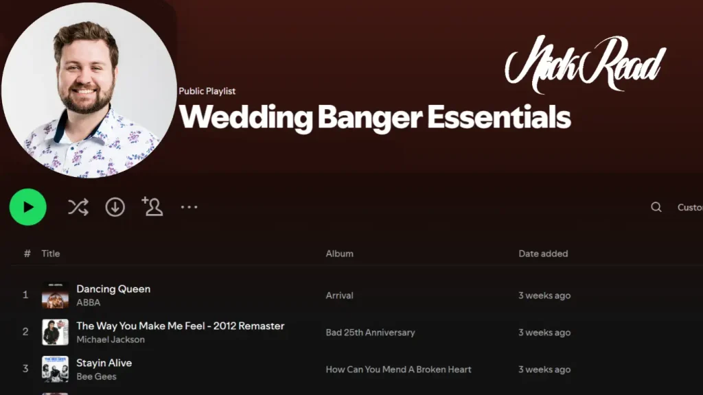 - A 3 hour Playlist of the most popular wedding dance tracks to guarantee you and your guests an amazing night!